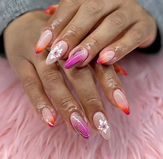 - short or extra long, square, coffin, almond, stiletto, French, ombré.